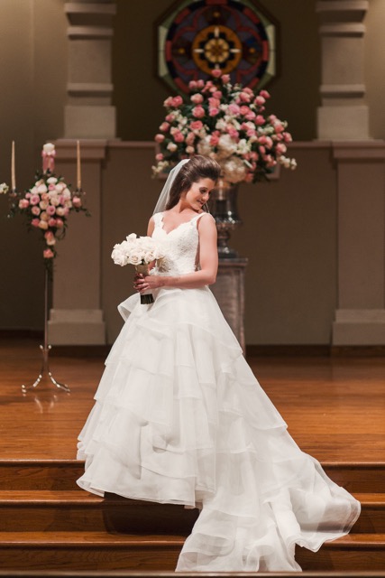 Casey’s bridal bouquet was also chosen by her groom, a European tradition. She carried Tyler’s favorite cream roses, which were wrapped with lace taken from his mother’s wedding gown.