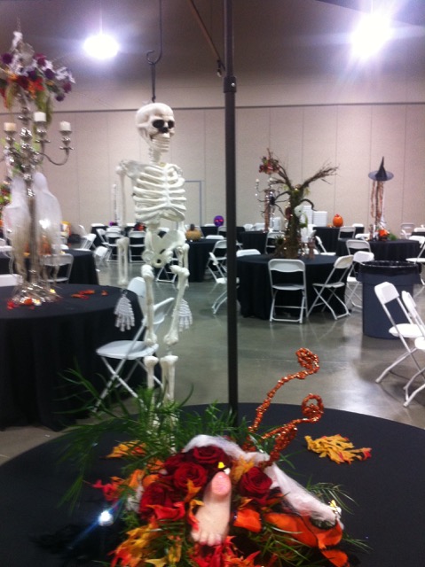Sometimes using things in unexpected ways can bring total success to any event. Our Posey Peddler Prop House wedding equipment lends itself beautifully to this haunted affair. Our black table cloths and the client’s collection of Halloween items created a Bootiful party. Fresh flowers created by our creepy loving designers truly set this party apart from the ho hum ……drum! Our party themes are never ending…… let us create for you!
